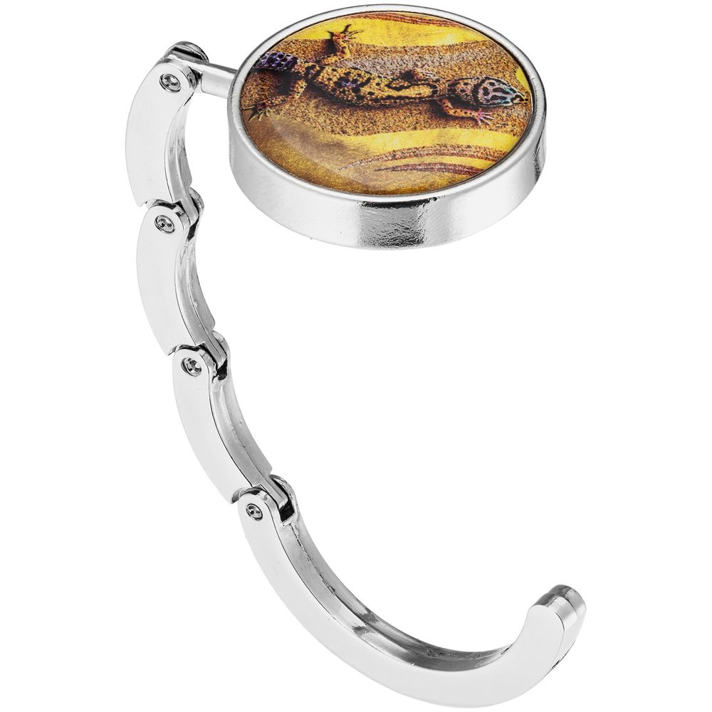 Переливающиеся песочно-золотистые оттенки, высокое качество исполнения и рельефная поверхность материала. Коллекция «Хозяйка огня» — прекрасный способ выразить свое уважение и восхищение.Крючок для сумки — маленький, но очень элегантный подарок. Решит проблему, куда повесить сумку в офисе или кафе. Надежно крепится на столе, складывается змейкой, умещаясь в кармане той же сумки.