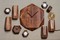 Изделия выполнены из бука — плотной и прочной древесины с однородной структурой и ярко очерченными годичными кольцами. Это придает коллекции дополнительный шарм: живая фактура дерева оригинально сочетается со строгой геометрией форм.